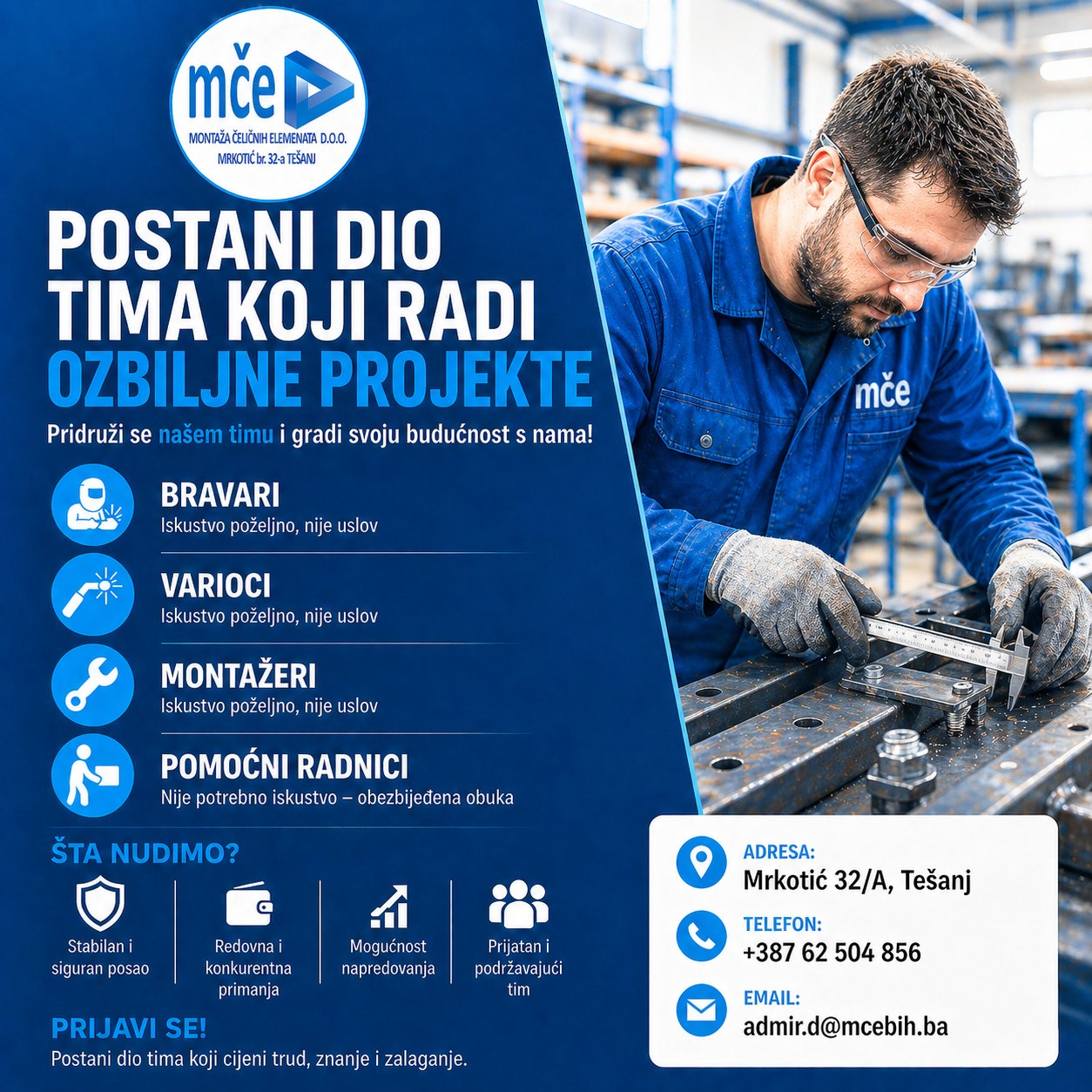 Firma 𝗠Č𝗘 𝗱.𝗼.𝗼. 𝗧𝗲š𝗮𝗻𝗷 širi svoj tim i traži nove radnike