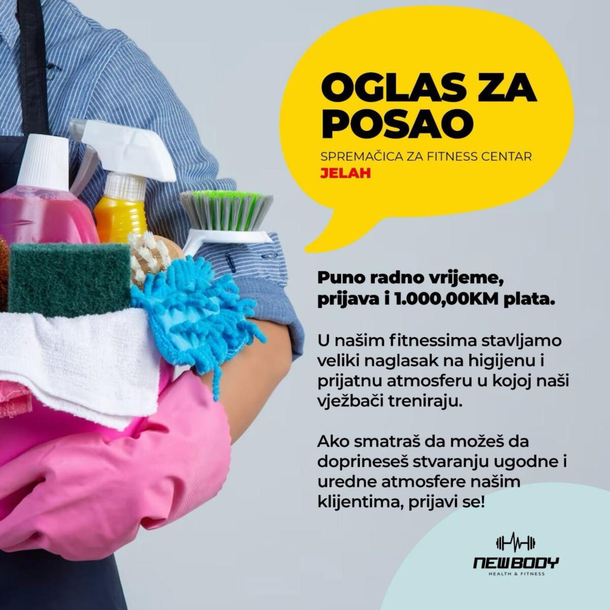 Tražimo odgovornu, urednu i pouzdanu osobu za redovno čišćenje i održavanje prostora fitness centra.