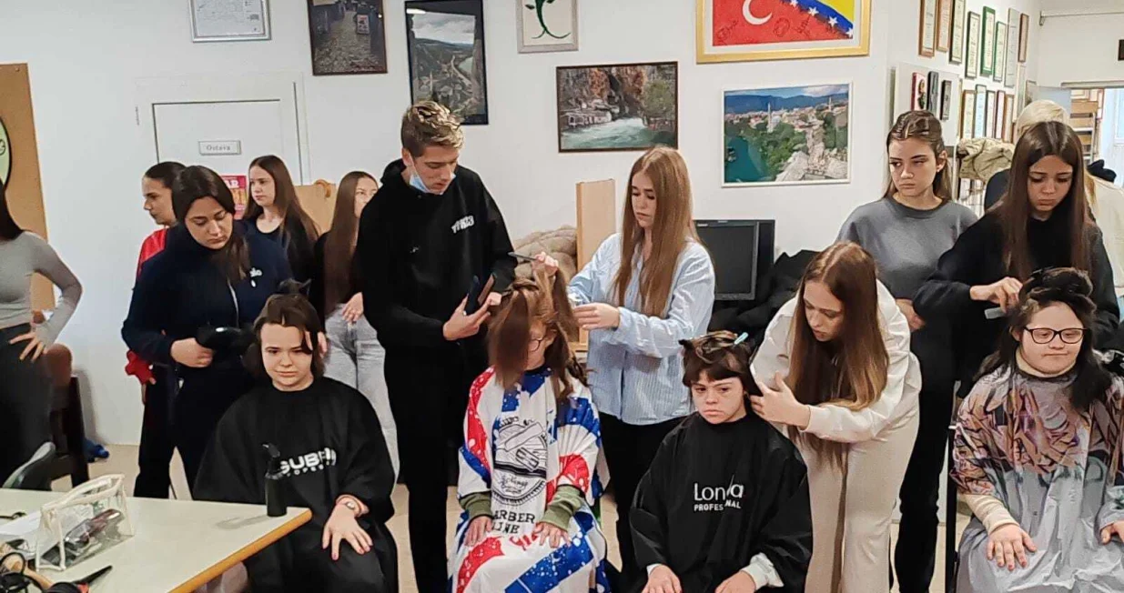 Učenici Srednje politehničke škole Mostar koji se obrazuju za zanimanje frizeri i kozmetički tehničar, u pratnji svojih mentora, tradicionalno su posjetili tri ustanove: Centar za odgoj, obrazovanje i podršku „Los Rosales“, Dom za stara i iznemogla lica te Udruženje „Sunce“.